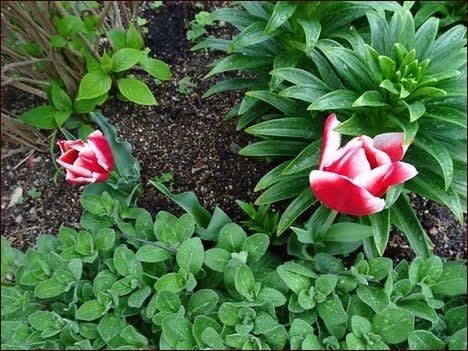 ここにはチューリップをまとめ植えしています。