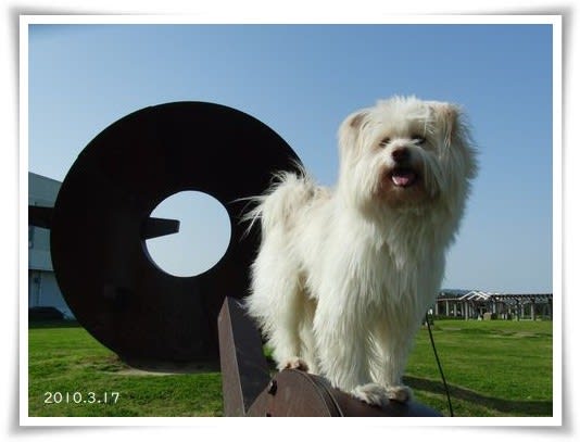 余裕のペロッで、サーカス犬ポーズの正ちゃん。