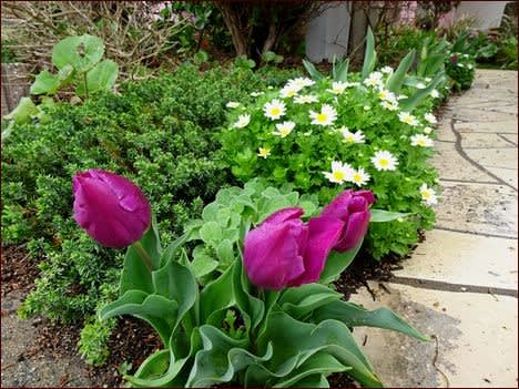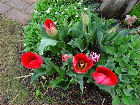 他の色も咲いたら「チューリップ花壇2」を