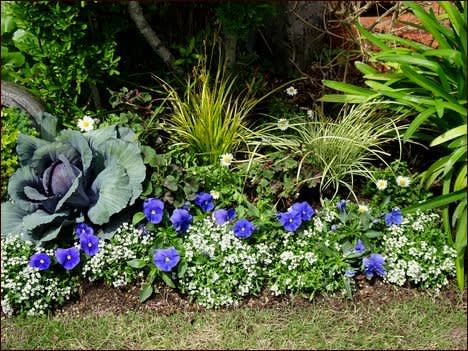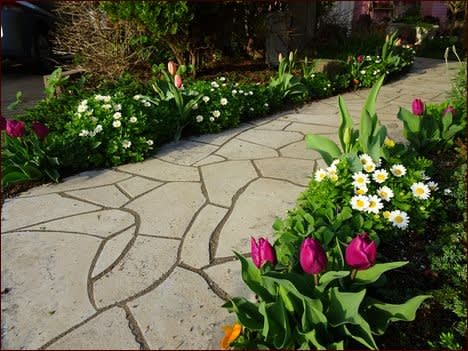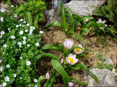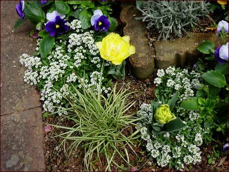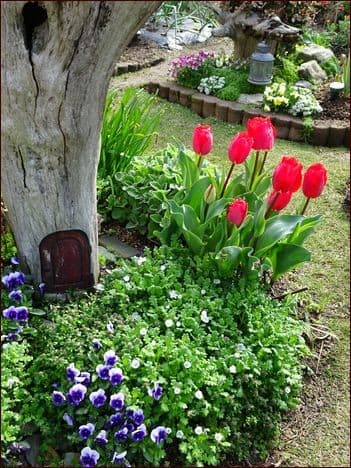 チューリップは紫とピンクを3球ずつ交互に植え、