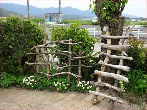 流木の柵と梯子。