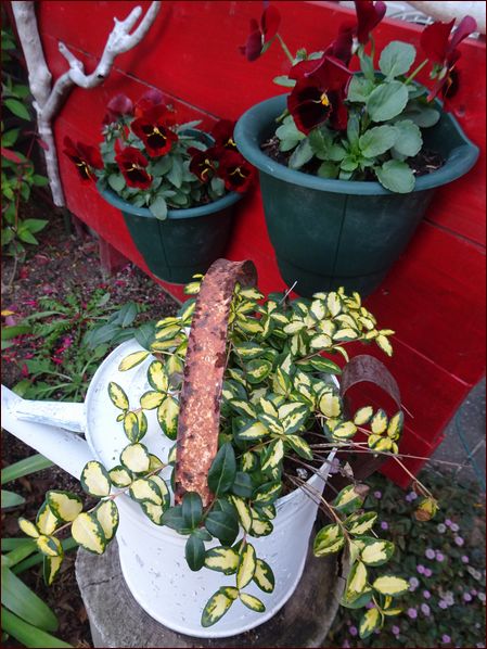 外に出しっぱなしにしている大きな苺ポット。